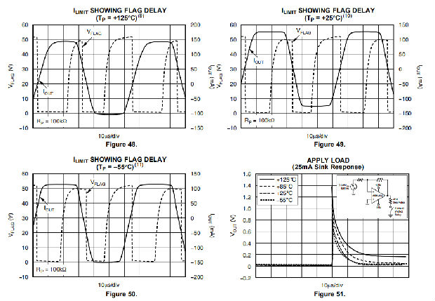 图24和图48至图50显示了OPA454的电流极限特性。电流限制是通过内部限制输出晶体管的驱动来实现的。除非模具温度上升到+150°C,否则输出可以持续提供有限的电流,从而引发热关机。在充分散热的情况下,并使用尽可能低的电源电压,OPA454可连续保持在电流限制内,而不会进入散热状态关机。不过鉴定研究表明,400小时热停堆循环引起的最小参数变化,应避免这种运行模式,以最大限度地提高可靠性。最好提供适当的散热(通过物理板或气流),以保持在热关机阈值以下。为了延长设备的使用寿命,请将结温保持在+125°C以下。