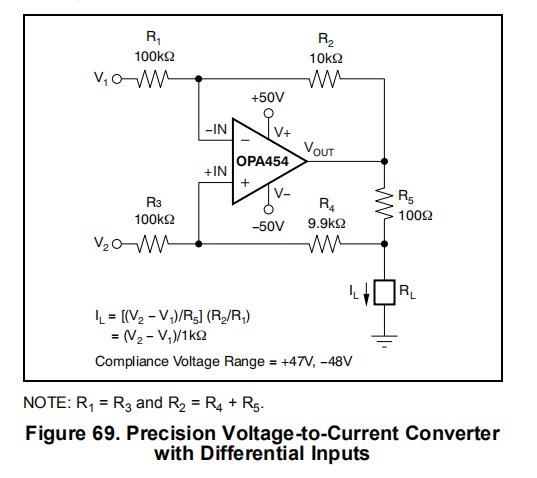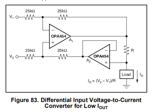 本节介绍了四种不同的应用,利用具有差分输入的高合规电压电流源。图69和图83说明了不同的应用。
