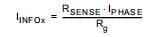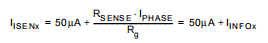 其中RSENSE是一个外部感测电阻或rds,on的低端mosfet和Rg是跨导ISENx和PGNDSx引脚之间朝向读数点的电阻器;Iphose是每个引脚携带的电流相位,特别是在振荡器周期中间测得的电流内部再现的当前信息用前面等式的第二项表示为跟随: