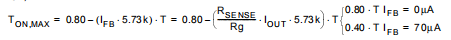 在这种特殊情况下,开关频率的结果降低。准时是允许的最长时间(TonMAX)关闭时间取决于应用程序: