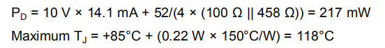 此最高工作结温度远低于大多数系统级目标。由于在该计算中假设了绝对最坏情况下的输出级功率,因此大多数应用都较低。