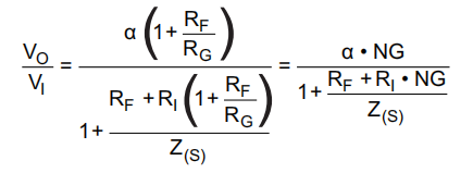 •α⇒从非反转输入到反转输入的缓冲增益。