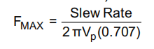 给定可用转换率和期望峰值输出摆幅(正弦波输出引脚处)的最大工作频率为: