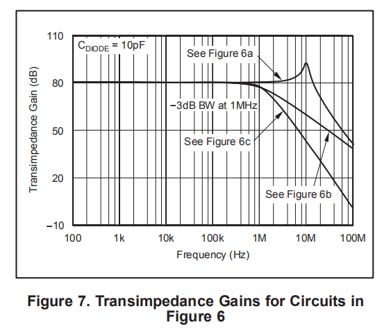 有关更多信息,请参阅应用公告AB−050(SBOA055),直观补偿跨阻放大器。