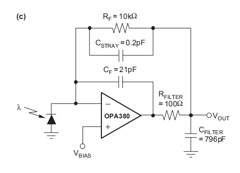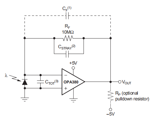 (3) CTOT是光电二极管电容加上OPA380输入电容。