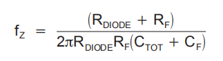 使用RDode表示等效二极管电阻,CTOT表示等效二极管电容加上OPA380输入电容,噪声零点fZ由以下公式计算: