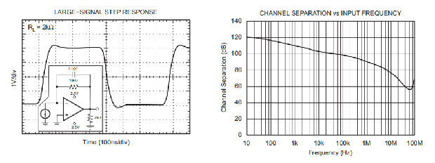 OPA380被指定在至少600毫伏正轨和100毫伏负轨电压范围内摆动,负载为2kΩ,具有良好的线性度。摆向负轨的同时保持良好的线性度,可延伸至0V见截面,实现输出摆对地。见典型特性曲线,输出电压摆幅与输出电流。