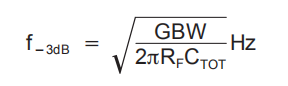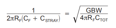 通过设置这三个变量,可以设置反馈电容值(CF)来控制频率响应.CSTRAY是RF的杂散电容,对于典型的表面贴装电阻器,其为0.2pF。