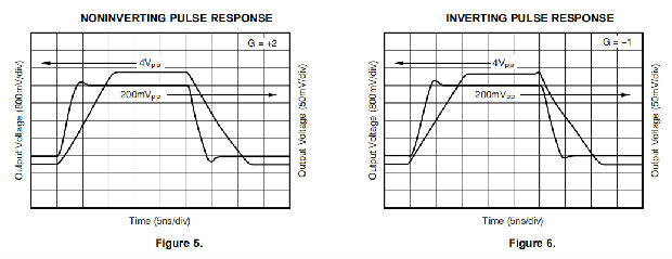 RF和RG需要相等以保持恒定的增益幅度。输入脉冲的上升和下降时间tr(IN)应足够慢,以防止响应中的预拍摄伪影。