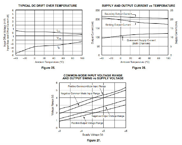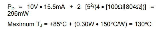 例如,使用图28电路中的OPA2652E(SOT23-8封装)计算最大TJ,该电路在最大规定环境温度+85°C下运行,两个输出驱动2.5VDC至接地100Ω负载。