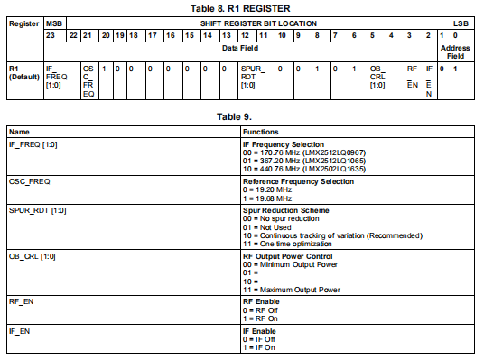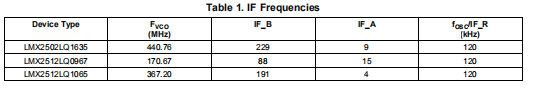 根据上述等式,LMX2502/12产生表1中总结的固定中频频率。