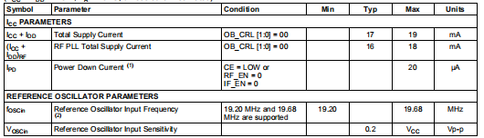 RF_-FN:二进制11位模数计数器的预设分子(对于fOSC=19.20 MHz或0≤,0≤RF_FN<1920对于fOSC=19.68 MHz,RF_FN<1968)