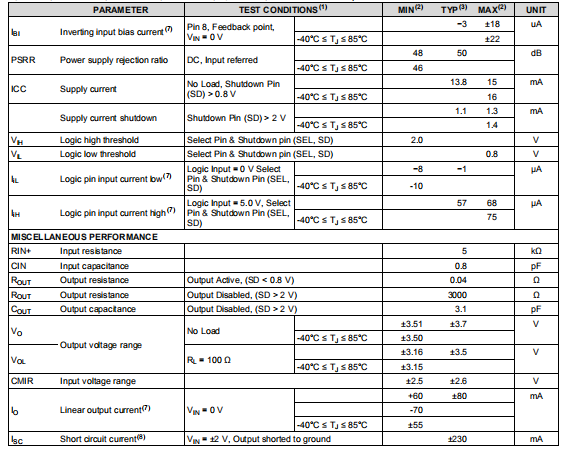 LMH6570封装在给定温度下能耗散的最大功率可以用下式:PMAX=(150°–TAMB)/RθJA