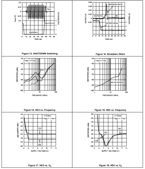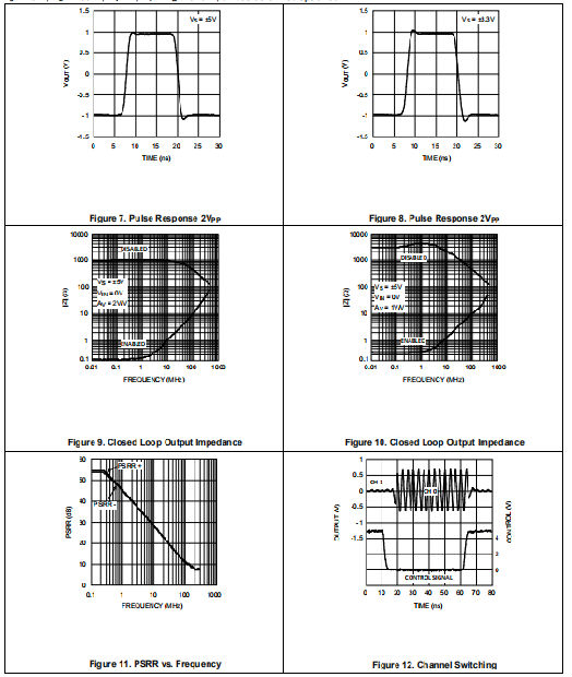在这种应用中,输出稳定可能比LMH6570开关规范长(~20 ns),在两个单独的LMH6570设备之间切换时。开关时间限制因素发生在LMH6570关闭,另一个使用SD(关机)引脚打开。输出稳定时间由第一个LMH6570进入高阻抗状态所需的时间加上第二LMH6570输出,用于耗散第一器件的剩余输出电荷(受输出电流限制第二个装置的能力)和达到最终电压值所需的时间。