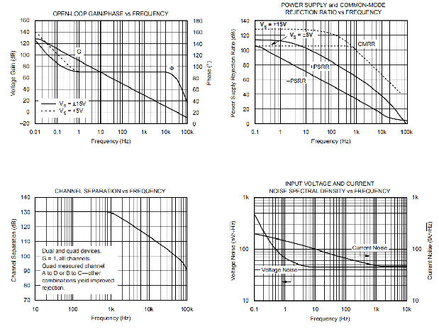 除非另有说明,否则在TA=+25°C和RL=100kΩ时连接到VS/2(VS的接地=±15V)。