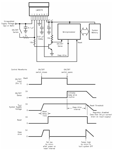 注:如果由LM9070的输出电压供电的微处理器提供电源,则逻辑“1”当调节器关闭时,电压水平将跟踪VOUT。