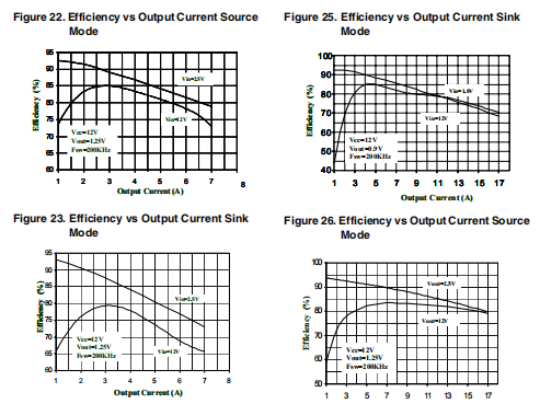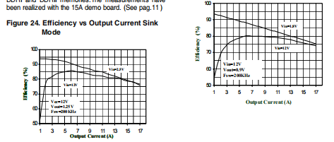 图22、23示出了L6910G对于图中所示应用的终端部分的效率。21,在sink和source模式下。图中还显示了当输入电压直接来自12V轨道时的效率值。