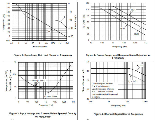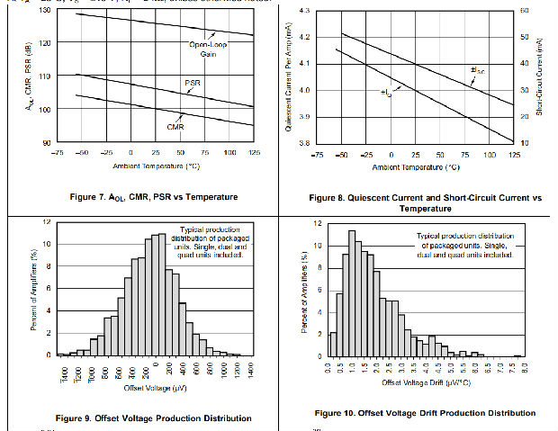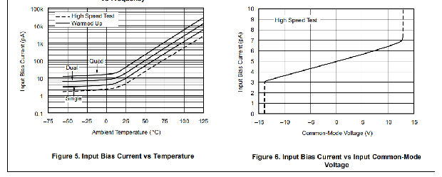 双通道和四通道的总功耗比单通道高,导致结温更高。因此,一个预热的四元组将有更高的输入偏置电流比一个预热单。此外,由于θJA较大,SOIC在相同环境温度下的结温通常高于DIP。