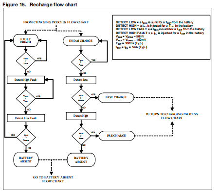 当充电结束时,蓄电池电压低于充电电压阈值(VRCH),设备返回充电状态。充电阈值的值电压为150毫伏。