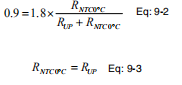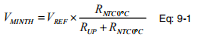 其中RUP是上拉电阻,VREF等于1.8V,RNTC0°C是NTC的值在0°C时。由于在低温极限VMINTH=900mV时:
