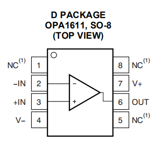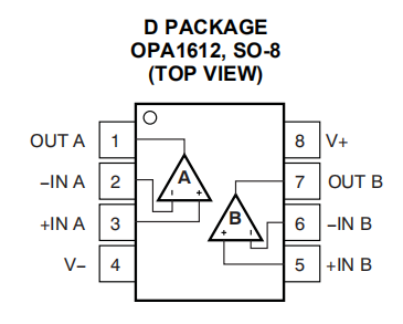 OPA1611和OPA1612均采用SO-8包装,规定温度为-40°C至+85°C。