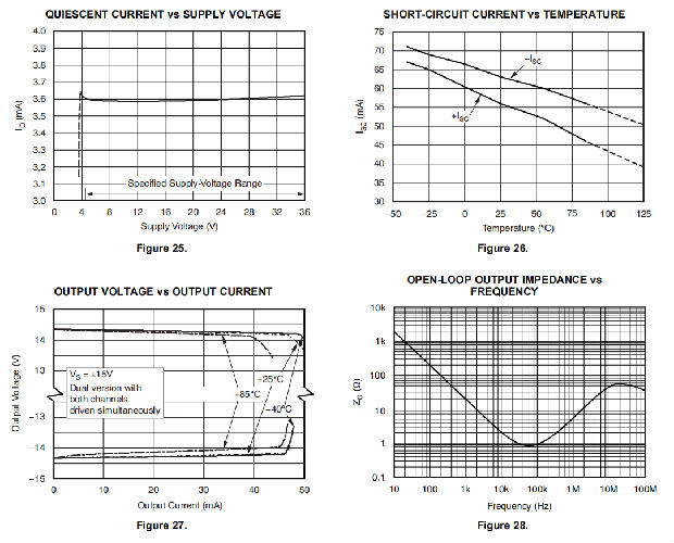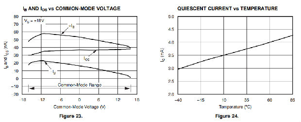 在所有情况下,共模电压必须保持在规定范围内。此外,关键参数在TA=–40°C到+85°C的指定温度范围内得到保证。随工作电压或温度变化的参数显示在典型特性中。
