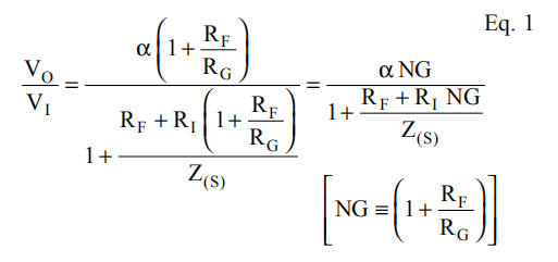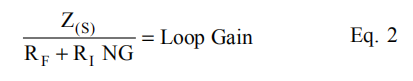 这是写在一个回路增益分析格式,其中由非无限开环增益引起的误差显示在分母中。如果Z(s)在所有频率上都是无穷大的,方程1的分母将减小为1,分子中显示的理想期望信号增益将得到。方程式1分母中的分数决定了频率响应。方程2显示为回路增益方程: