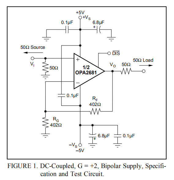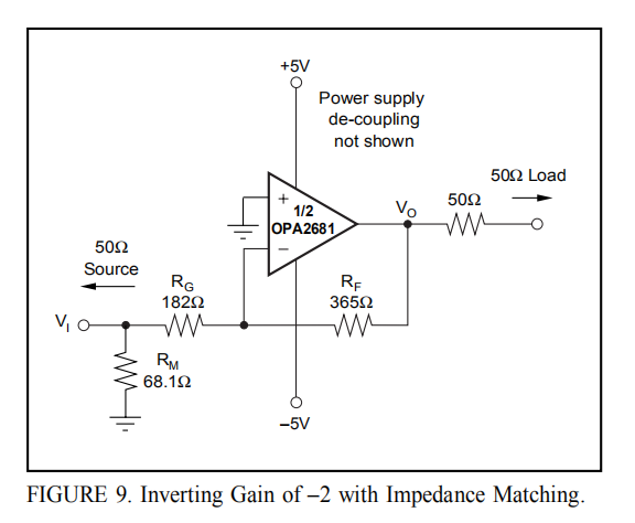 缓冲区输出阻抗RI是带宽控制方程的一个关键部分。OPA2681通常约为45Ω。