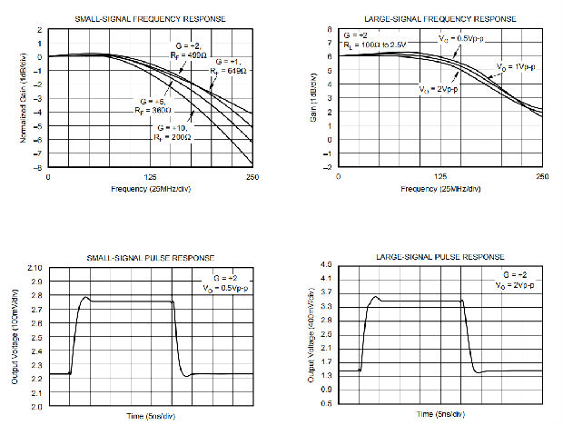 G=+2,RF=499Ω,RL=100Ω至+2.5V,除非另有说明(见图2)。