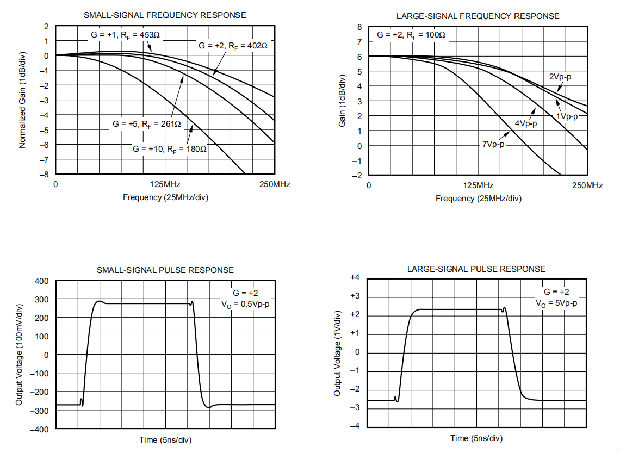 ●宽带+5V工作:225MHz(G=+2)