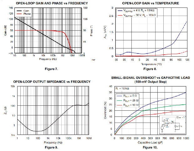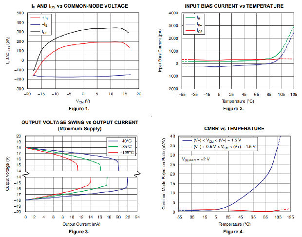 OPAx180系列放大器的工作电压为4 V至36 V(±2 V至±18 V)。许多规范适用于-40°C至+105°C。典型特性中给出了与工作电压或温度相关的显著变化的参数。