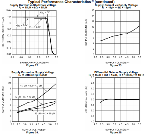 以下规格适用于AV=2V/V(RI=150kΩ),RL=15μH+8Ω+15μH,除非另有规定。限制适用于TA=25°C