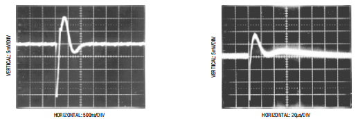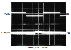 例如从电压调节器(如LT1117)获得。对于高频旁路,放置0.1μF陶瓷盘建议与22μF同时使用。又是线索应该保持在最低限度。使用电池为LTC1287将有助于减少旁路电容量VCC引脚上需要。电池放在靠近设备只需10μF即可充分绕过电源引脚。图4显示了不良VCC旁路的影响。图5显示了LT1117低压差的沉降带有22μF旁路电容器的调节器。噪音和纹波保持在0.5mV左右。图6显示了响应带有10μF旁路电容器的锂电池。这个噪声和纹波控制在0.5mV以下。