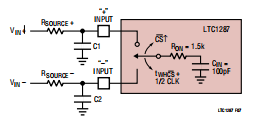 因为电容再分配A/D转换所使用的技术,LTC1287的模拟输入