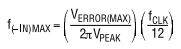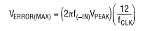 其中f(–IN)是–IN输入电压的频率,VPEAK是其峰值振幅,fCLK是克莱克。通常情况下,错误并不重要。对于60Hz输入端的信号产生0.25LSB的误差(150μV)当转换器以CLK=500kHz运行时,其峰值必须是16mV。重新安排上述内容方程,最大正弦信号数字化到给定精度的公式如下: