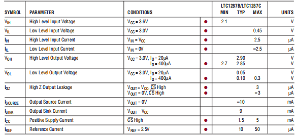 此供应范围的逻辑电平标准没有定义明确。现有的标准不是普遍接受。逻辑输入上的触发点LTC1287为0.28×VCC。这使得逻辑输入兼容HC类型级别和处理器