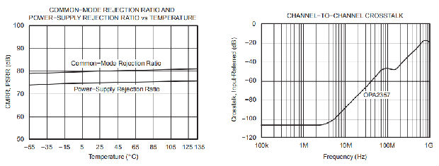 OPA357的电源范围为+2.7V至+5.5V(±1.35V至±2.75V)。但是,电源电压的范围为+2.5V至+5.5V(±1.25V至±2.75V)。高于7.5V(绝对最大值)的电源电压会永久损坏放大器。