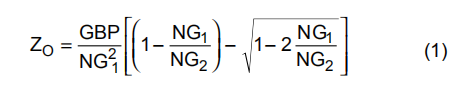 在物理上,这个ZO(22.3MHz,对于上面所示的值)设置为1/(2πRF(CF+CS)),并且是噪声增益的上升部分与单位增益相交的频率(如果投影回0dB增益)。噪声增益的实际零点出现在NG1•ZO处,噪声增益中的极点出现在NG2•ZO处。该极点实际设置为1/(RFCF)。因为GBP是用赫兹表示的,所以用ZO乘以2π,就可以得到CF通过求解方程2。
