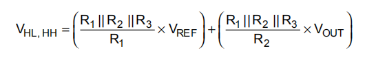 电路工作如下。当输入电压小于VHL时,输出限制在VH。当输入大于VHH时,输出限制在VL,VHL和VHH定义如下:
