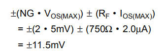 宽带电压反馈运算放大器的平衡输入级允许在各种应用中获得良好的直流输出精度。与同类产品相比,OPA699的电源电流微调提供了更严格的控制。尽管高速输入级确实需要相对较高的输入偏置电流(在每个输入端通常为3μA),但是它们之间的紧密匹配可用于减少由该电流引起的输出DC误差。通过匹配出现在两个输入端的直流源电阻,可以大大降低总输出偏移电压。这减少了由于输入偏置电流乘以反馈电阻而产生的输出直流误差。使用最坏情况下+25°C输入偏移电压和电流规格评估图1的配置,给出最坏情况下的输出偏移电压,NG=非转换信号增益,等于: