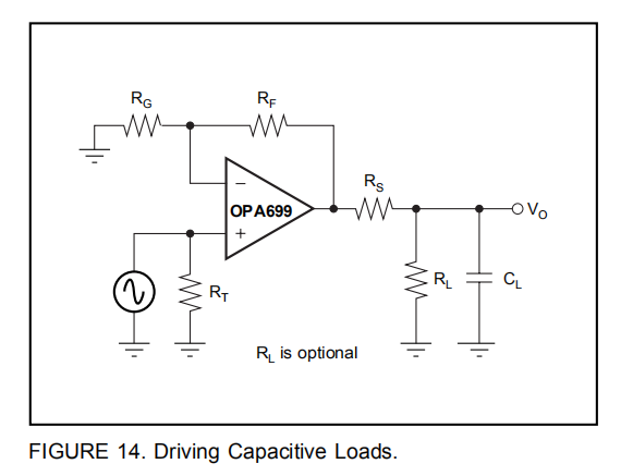 一般来说,电容性负载应最小化,以获得最佳的高频性能。同轴电缆(RG-58为29pF/ft)的电容在同轴电缆或传输线的特性阻抗中终止时不会对放大器产生负载。