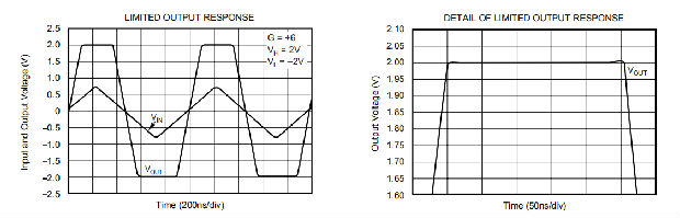 窄的非线性范围和低的限制偏移的结合允许限制电压被设置在期望的线性输出范围的100mV之内。从限制中快速恢复1ns可确保过驱动信号对信号通道是透明的。在输出端实现限制功能,与输入端相反,可以为任何增益提供指定的限制精度,并允许OPA699用于所有标准运算放大器应用。