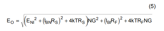 总输出斑点噪声电压可以计算为所有平方输出噪声电压贡献者和的平方根。方程5显示了输出噪声电压的一般形式,如图16所示。