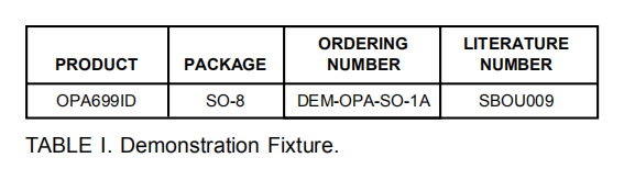 演示夹具可在德州仪器网站上索取,通过OPA699产品文件夹。