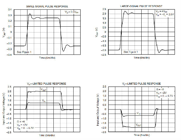 TA=+25°C,G=+6,RF=750Ω,RL=500Ω至VCM=+2.5V,VL=VCM–1.2V,VH=VCM+1.2V,除非另有说明。