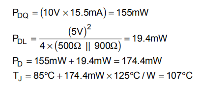 这将是VO=±2.5VDC的最大TJ。大多数应用将处于较低的输出级功率和较低的TJ。