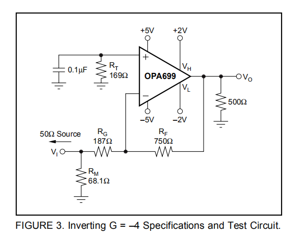 OPA699已经过优化,可以驱动500Ω负载,例如adc。它在驱动100Ω负载时仍然表现良好;显示了500Ω负载的技术规格。这使得OPA699成为各种高频应用的理想选择。