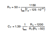 在选择了RT和CT的商业值后,振荡器频率(fosc)可使用以下公式进行良好的近似验证: