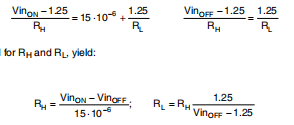 这种方法提供了额外的自由度:可以将通过适当选择外部分隔器(见下文)。与电压滞后,相反,固定一个阈值根据比较器的内置迟滞自动修复另一个。参考图17,可以为ON建立以下关系输入电压的(VinON)和OFF(VinOFF)阈值:
