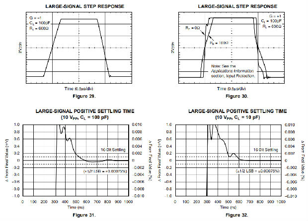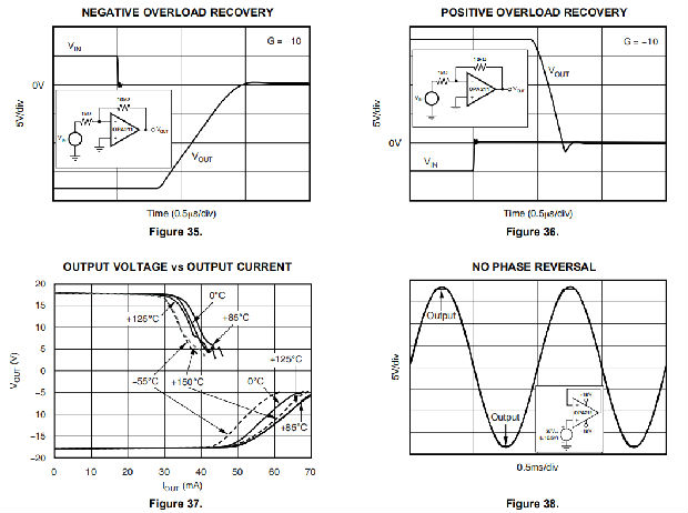 如果电源不能吸收电流,VIN可以开始向运算放大器提供电流,然后作为正电源电压源接管。这种情况下的危险是电压可能上升到超过运算放大器绝对最大额定值的水平。在极端但罕见的情况下,应用VS和–VS时,吸收装置会触发。如果发生此事件,则在VS和–VS电源之间建立直流路径。吸收装置的功耗很快就被超过,极端的内部加热会破坏运算放大器。
